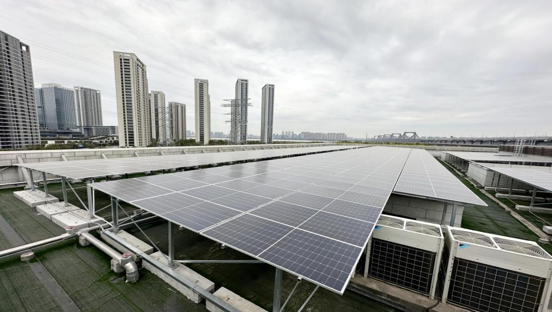 近年來,浙江綠色能源比例迅速提升。毗鄰杭州亞運(yùn)村的電力能源碳中和技術(shù)示范基地,屋頂被一大片光伏板覆蓋著,邊上還有兩臺(tái)風(fēng)力發(fā)電機(jī)在迅速運(yùn)轉(zhuǎn)。這些屋頂光伏以及風(fēng)力發(fā)電實(shí)現(xiàn)年度發(fā)電量超百萬千瓦時(shí),可滿足亞運(yùn)村區(qū)域的智慧路燈、園區(qū)內(nèi)的數(shù)據(jù)中心等設(shè)備設(shè)施的用電需求。