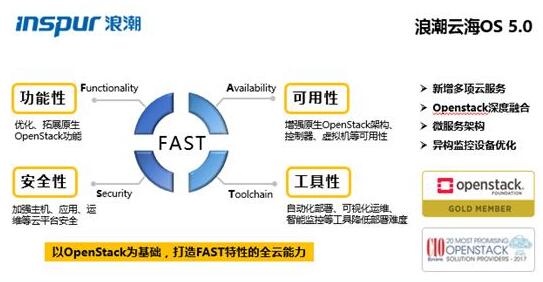 對于OpenStack架構(gòu)未來的發(fā)展,張東認(rèn)為"FAST"云計算產(chǎn)品設(shè)計理念是浪潮建立差異化競爭優(yōu)勢的重心所在。浪潮的"FAST"是指從Functionality(功能性)、Availability(可用性)、Security(安全性)、Toolchain(工具化)著手,提供成熟、完善、易用的OpenStack方案型產(chǎn)品,推動開源技術(shù)更好普惠。