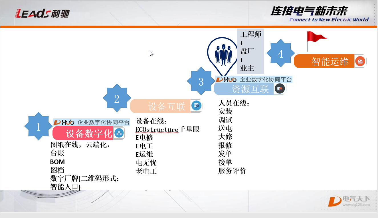 采訪中,令永卓感慨道:“我已經(jīng)服務(wù)于電氣行業(yè)25年,很榮幸作為參與者一路見證電氣行業(yè)由傳統(tǒng)走向今天的智能化,這些離不開智能制造近年來的大力推動(dòng)。當(dāng)前企業(yè)紛紛將其納入發(fā)展的戰(zhàn)略目標(biāo),利馳也不例外,不斷創(chuàng)新研發(fā),先后推出了工業(yè)電氣一站式工作平臺(tái)——電氣天下和D-Hub企業(yè)數(shù)字化協(xié)同平臺(tái),幫助電力裝備制造行業(yè)智造升級(jí)。” 據(jù)了解,電氣天下針對(duì)個(gè)人用戶開放服務(wù),提供海量免費(fèi)工業(yè)設(shè)計(jì)軟件、選型數(shù)據(jù)及服務(wù)、專業(yè)文獻(xiàn)等資源,幫助電氣行業(yè)上下游實(shí)現(xiàn)電氣的選型、圖紙、樣本資料、軟件下載,涵蓋電氣指數(shù)、電氣智庫知識(shí)分享一體化與一站式的服務(wù)。而把眾多工業(yè)軟件集成到一個(gè)云端數(shù)據(jù)庫,一個(gè)統(tǒng)一的數(shù)字化協(xié)同平臺(tái)——D-Hub,則成功地打通了選型、報(bào)價(jià)、設(shè)計(jì)、工藝、制造、供應(yīng)鏈的數(shù)據(jù),使得企業(yè)的數(shù)據(jù)資產(chǎn)可以跨部門、跨企業(yè)的共享和復(fù)用,并讓數(shù)據(jù)在流動(dòng)中不斷增值。目前D-hub已覆蓋多種模板,建立了以3D元件為核心的覆蓋配電、自動(dòng)化行業(yè)1000多個(gè)品牌、3萬多個(gè)系列、2.5億多個(gè)電氣及自動(dòng)化元件數(shù)據(jù)庫。令永卓直言:“D-Hub的功能遠(yuǎn)不止此,利馳已經(jīng)在D-Hub上開始發(fā)力,發(fā)展數(shù)據(jù)可視化技術(shù),進(jìn)而實(shí)現(xiàn)設(shè)備互聯(lián)、產(chǎn)線互聯(lián),以及智能調(diào)度,助力電力裝備業(yè)的設(shè)計(jì)、制造的全流程數(shù)字化。并且,未來D-Hub將帶來更多可能性,實(shí)現(xiàn)設(shè)備數(shù)字化,進(jìn)而將設(shè)備資產(chǎn)與維修工程師和設(shè)備生產(chǎn)商連接起來,實(shí)現(xiàn)資源互聯(lián)和設(shè)備在線,最終實(shí)現(xiàn)智能運(yùn)維,更好地服務(wù)電力電氣行業(yè)。”