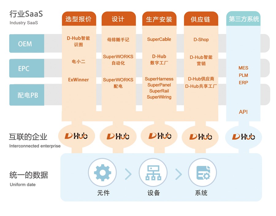令永卓深諳數(shù)據(jù)的價(jià)值。他帶著創(chuàng)業(yè)家的韌勁,敏銳洞察電力裝備制造行業(yè)的發(fā)展趨勢(shì),本著從數(shù)據(jù)中學(xué)習(xí)、改變電力電氣行業(yè)的初衷,從數(shù)據(jù)中提取價(jià)值服務(wù)用戶的理念,提出用數(shù)據(jù)賦能行業(yè),致力于打通數(shù)據(jù)流。談起如今專注挖掘數(shù)據(jù)的價(jià)值,令永卓表示,這一切源于他求學(xué)時(shí)代的經(jīng)歷。大學(xué)期間,在清華工程力學(xué)系求學(xué)的令永卓建立了面向問題建立數(shù)學(xué)模型,把復(fù)雜的非線性問題抽象為簡(jiǎn)單的線性問題進(jìn)行求解的思維方式。在后來的工作中,他發(fā)現(xiàn)設(shè)備的設(shè)計(jì)、生產(chǎn)制造以及運(yùn)維之間并非真正有效連接,存在嚴(yán)重的數(shù)據(jù)偏差甚至脫節(jié)的現(xiàn)象,為達(dá)到設(shè)計(jì)、制造以及供應(yīng)鏈的協(xié)同,他提出在電力裝備制造行業(yè)形成貫穿橫向、縱向、端到端的數(shù)據(jù)流通的舉措。之后,他將創(chuàng)想落地,從電氣軟件的數(shù)據(jù)建模開始,制定標(biāo)準(zhǔn),進(jìn)行3D仿真,通過機(jī)器智能設(shè)計(jì)、智能識(shí)圖、智能報(bào)價(jià),進(jìn)而幫助產(chǎn)品實(shí)現(xiàn)協(xié)同制造。令永卓透露:“當(dāng)前基于D-Hub制造的縱向數(shù)據(jù)流與D-Hub供應(yīng)鏈的橫向數(shù)據(jù)流已經(jīng)被成功打通,下一步我們將重點(diǎn)打通集產(chǎn)品研發(fā)、系統(tǒng)設(shè)計(jì)、安裝施工、運(yùn)營(yíng)維護(hù)的D-Hub運(yùn)維的端到端數(shù)據(jù)流。”