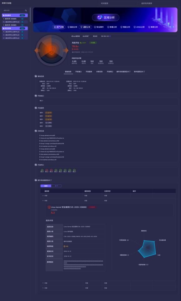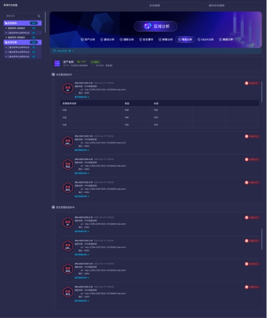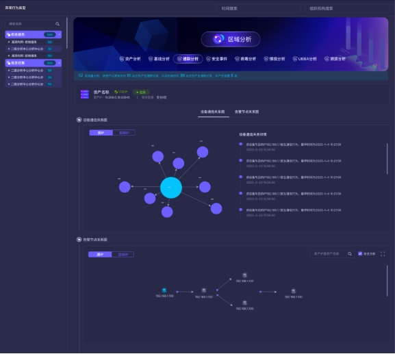 長(zhǎng)揚(yáng)態(tài)感網(wǎng)絡(luò)空間安全分析功能以資產(chǎn)為核心,從區(qū)域、聯(lián)通性、病毒、情報(bào)、漏洞、基線(xiàn)、溯源、UEBA行為等多個(gè)方面進(jìn)行全方位、立體化分析。