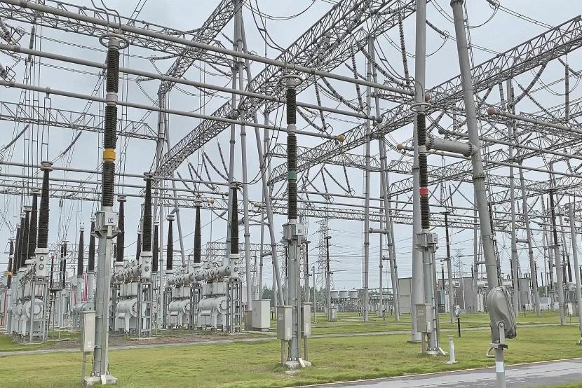 上海電科院員工在1000千伏特高壓練塘變電站開展寬頻電壓監(jiān)測。