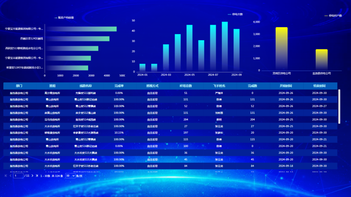 隨著寧東公司配網(wǎng)專業(yè)PC端及移動端看板上線,業(yè)務(wù)人員以往通過系統(tǒng)取數(shù)后手動計算的數(shù)據(jù),如“配變戶均容量”、“停電時戶數(shù)”等,均可從場景直接獲取;需跨系統(tǒng)查看的內(nèi)容,如“配變與線路停電信息及涉及用戶明細”、“無人機飛手任務(wù)完成情況”等,都已在場景直觀展示出來,大大提升工作效率。