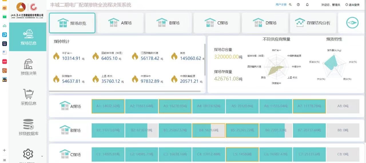 江投集團所屬豐城電廠將配煤摻燒與燃料管理中的關鍵環(huán)節(jié)(燃料采購、場存堆取、配煤摻燒)、燃燒優(yōu)化、排放達標等因素統籌關聯,大幅減少人員的分析和決策參與,提高了系統運行效率和可靠性,最大程度提高經濟煤種的摻燒比例。2023年1—10月,豐城電廠累計摻燒低灰熔點煤259.93萬噸,全年低灰熔點摻燒比例比2020—2022年平均值增加約10%,全年可多摻燒低灰熔點煤19萬噸,經濟、社會效益顯著。