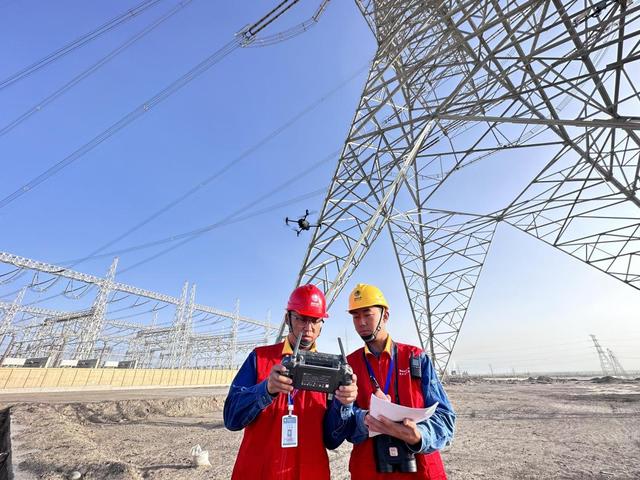 圖為新疆送變電公司員工在750千伏車楚一線001號開展無人機自主巡檢(張志文 攝)