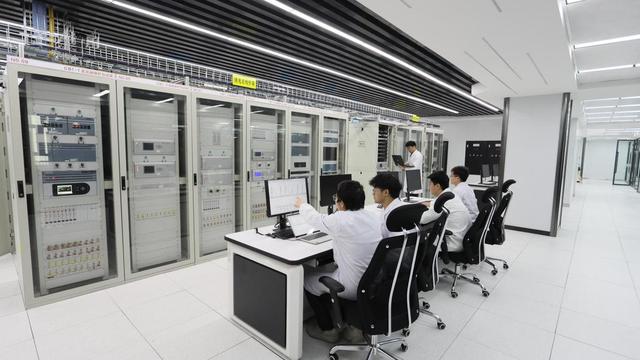 圖為技術人員在新疆電力系統(tǒng)全過程仿真重點實驗室開展電網(wǎng)故障反事故演習(唐毅軒 攝)