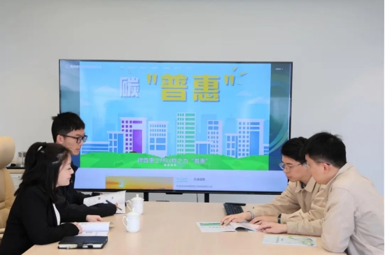 蘇州供電公司碳普惠運營團隊成員為客戶介紹一站式碳中和服務(wù)。