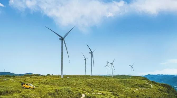 ▲南方電網(wǎng)貴州貴陽(yáng)供電局工作人員走訪(fǎng)云頂風(fēng)電場(chǎng),該風(fēng)電場(chǎng)總裝機(jī)79.5兆瓦,年平均發(fā)電量1.62億千萬(wàn)時(shí)。萬(wàn)偉 攝