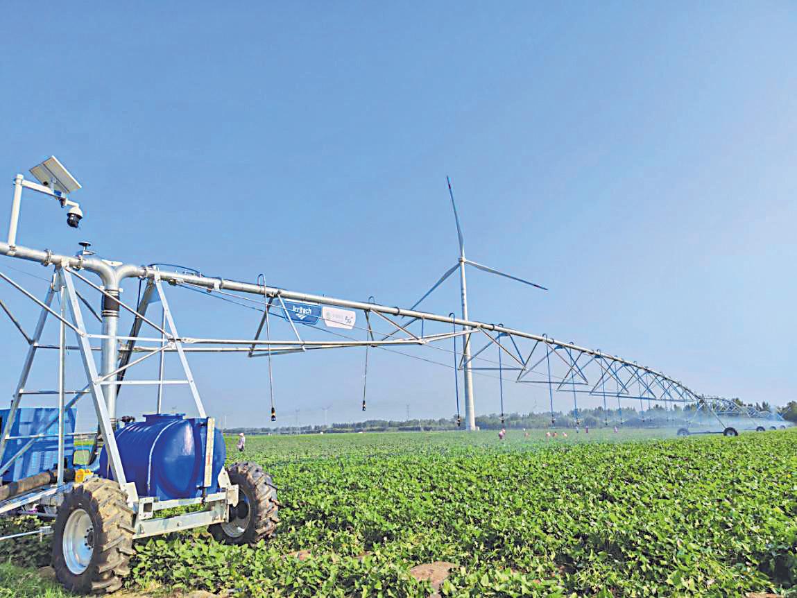 在延津縣,萬(wàn)畝高標(biāo)準(zhǔn)農(nóng)田里的夏玉米已進(jìn)入灌漿期,該階段澆水增肥是增加產(chǎn)量、保障豐產(chǎn)豐收的關(guān)鍵。在塔鋪街道大柳樹村的高標(biāo)準(zhǔn)農(nóng)田里,幾十米寬的大型平移式噴灌機(jī)似巨鳥展翅,在田間緩緩移動(dòng),“羽翼”下的幾十個(gè)噴頭噴出均勻的“水霧墻”,滋潤(rùn)著莊稼,讓玉米“吃飽喝足”。中國(guó)移動(dòng)5G水肥一體化智能灌溉技術(shù)將灌溉和施肥兩個(gè)農(nóng)業(yè)生產(chǎn)過(guò)程融合在一起,不僅實(shí)現(xiàn)了澆地向澆苗轉(zhuǎn)變,還能將水連同肥料直接輸送到玉米地里,讓玉米“渴”了就“喝”、“餓”了就“吃”,實(shí)現(xiàn)了對(duì)農(nóng)田水分和養(yǎng)分的綜合管理。