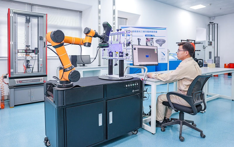 ▲國網(wǎng)江蘇電科院專業(yè)人員在電力物資質(zhì)量檢測實(shí)驗(yàn)室,開發(fā)適用于絕緣子、金具等物資的高精度激光測量設(shè)備