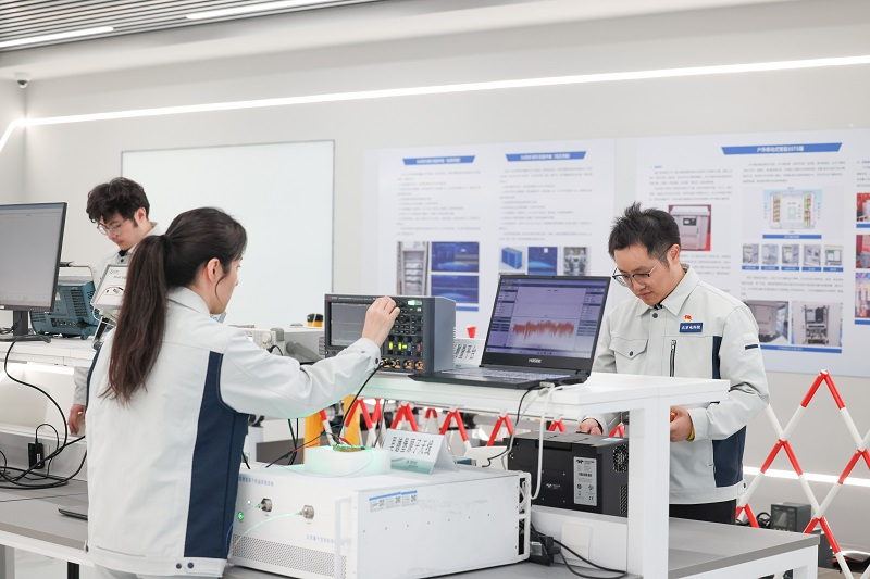▲國網(wǎng)北京電科院科研人員在實(shí)驗(yàn)室開展實(shí)驗(yàn)工作