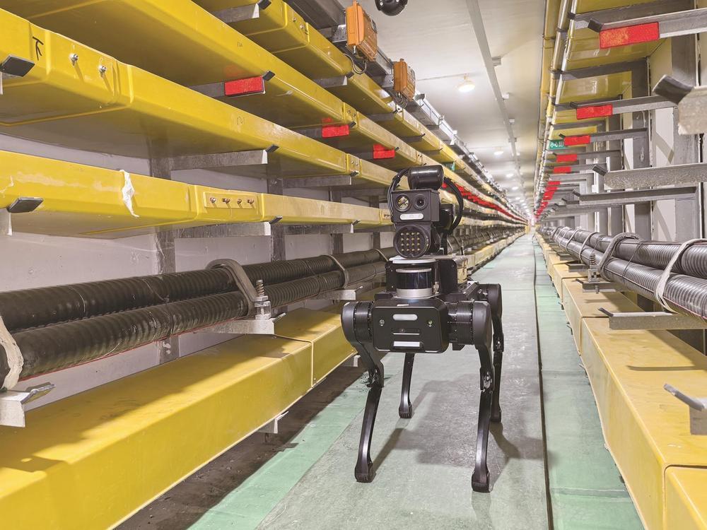 圖為搭載智能巡檢模塊的四足式機器人在110千伏電纜隧道內(nèi)對電纜設(shè)備進行全面掃描。桂寶利 攝