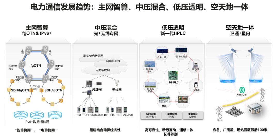 新型電力系統(tǒng)下,通信目標(biāo)網(wǎng)呈現(xiàn)四大特征:主網(wǎng)智算、中壓混合、低壓透明、空天地一體。主網(wǎng)智算需要考慮的是包括以東數(shù)西算為代表的光跑電不跑,以邊緣計(jì)算為代表的電跑光不跑,以及結(jié)合時(shí)空特性,來助力解決新能源消納和削峰填谷;近期臺(tái)風(fēng)應(yīng)急帶給我們的啟發(fā)是,10kV通信網(wǎng)是電網(wǎng)通信目前最薄弱的環(huán)節(jié),是典型的“盲區(qū)”。這需要體系性規(guī)劃以光纖+無(wú)線專網(wǎng)的通信目標(biāo)網(wǎng),也要輔之以空天地一體的應(yīng)急和廣覆蓋能力;隨著海量的分布式光伏接入、充電樁接入、分布式儲(chǔ)能接入、用戶互動(dòng)及潛在的負(fù)荷側(cè)交易,這需要體系性思考支撐400V低壓透明的通信需求。