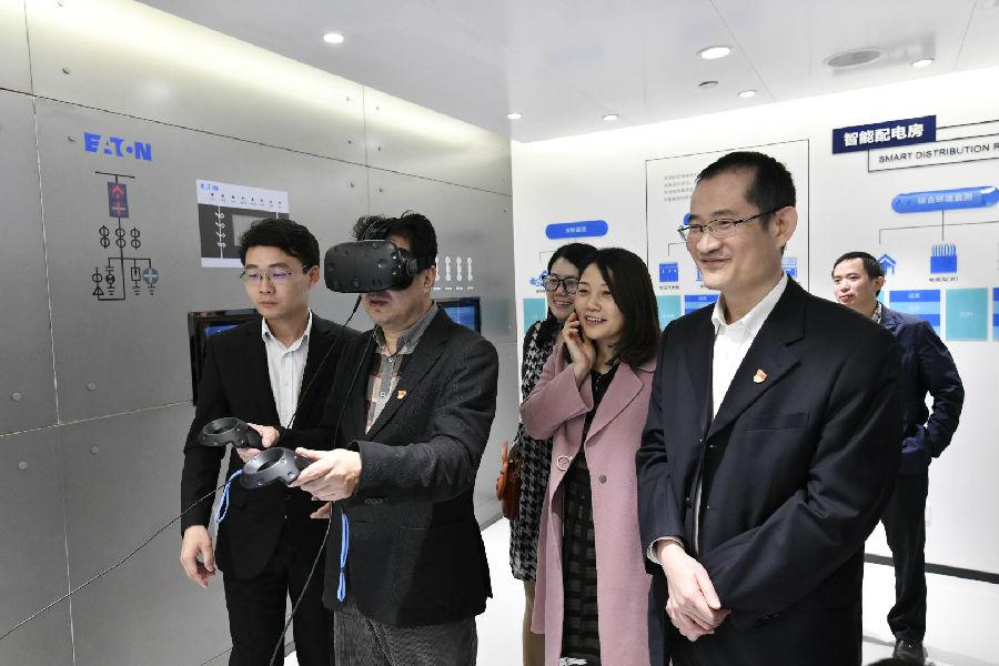 佩戴VR眼鏡即可揭開智能配電房神秘的面紗,享受沉浸式的觀影體驗;在書房通過手指觸動“跳一跳”游戲即可身臨其境體驗一度電的使用過程......這些以往只能在腦海里幻想的場景,如今變得可觀可感。