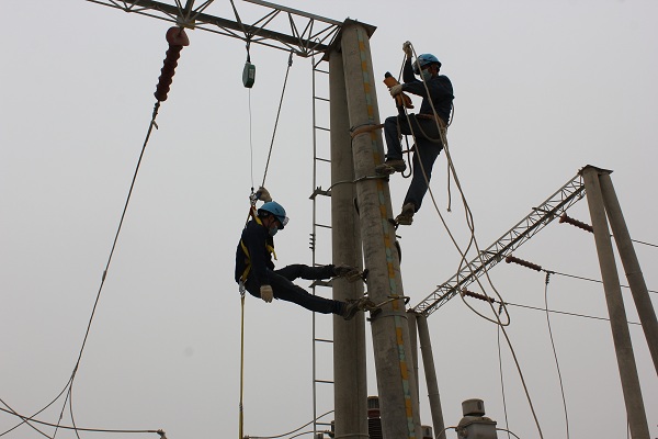 中國(guó)電力網(wǎng)訊 4月17日,新疆生產(chǎn)建設(shè)兵團(tuán)第一師電力有限責(zé)任公司輸變電工區(qū)在實(shí)訓(xùn)基地開(kāi)展高空應(yīng)急救援演練,旨在完善高空救援應(yīng)急預(yù)案,檢驗(yàn)技術(shù)工人的應(yīng)急救援能力。