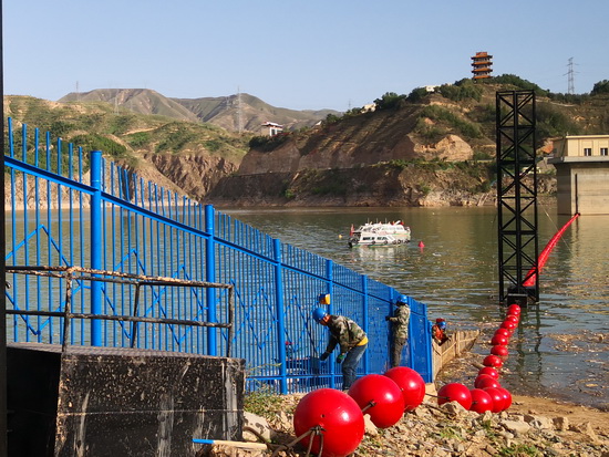 劉家峽水電廠壩前浮球阻攔系統(tǒng)是為防止船舶或人員靠近泄水區(qū)域發(fā)生意外事故而設(shè)置的安全防護(hù)設(shè)施和安全標(biāo)識(shí),主要由浮球、浮箱、滑道、塔架、圍欄及連接鋼絲繩等部件組成。這次維修主要是對(duì)2019年汛后檢查中發(fā)現(xiàn)的30個(gè)已損壞下沉浮球、連接浮球的繩卡進(jìn)行維修,對(duì)浮箱、鋼塔架和滑道等進(jìn)行防腐處理以恢復(fù)其功能。