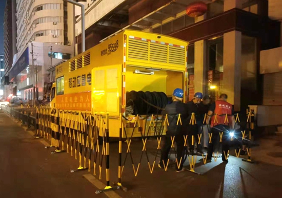 中國電力網(wǎng)訊 7月26日夜,在完成河南省鶴壁市淇縣的搶修任務(wù)后,國網(wǎng)壽光市供電公司搶修隊(duì)伍又馬不停蹄趕到鄭州市金水區(qū)農(nóng)業(yè)路21號(hào)某小區(qū),緊急架設(shè)圍欄、敷設(shè)電纜,開展200千瓦應(yīng)急電源車發(fā)電作業(yè),全力保障災(zāi)后小區(qū)居民生活用電。