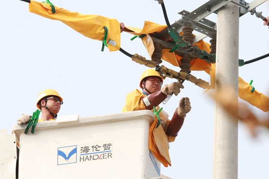國網(wǎng)山東壽光供電“秋老虎”高溫不減 帶電消缺保供電