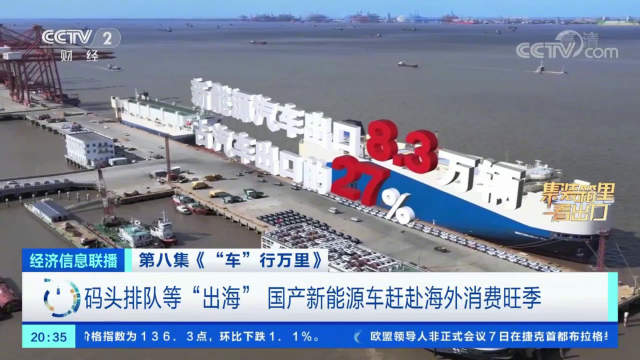 上海港的海通滾裝碼頭被稱為“汽車之港”,每天進(jìn)出港的車超過四千輛。記者在這里看到,隨著滾裝船緩緩地靠港,2000輛新能源車開始進(jìn)入待裝位置,排起長隊(duì),整裝待發(fā),它們即將發(fā)往世界各地。