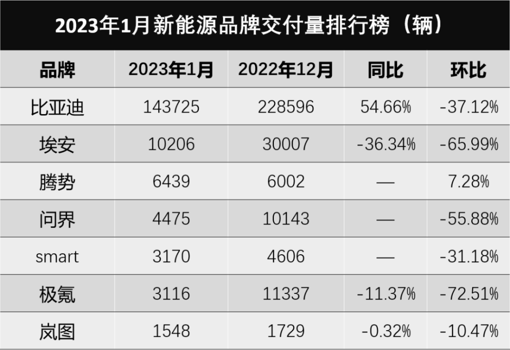 2023年的第一個月份,各家新能源車企也是準(zhǔn)時公布了銷量成績,說實話,基本都不怎么好看,受春節(jié)假期的影響,大部分車型都出現(xiàn)了“腰斬”的現(xiàn)象。