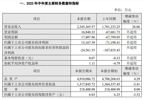 中國經(jīng)濟網(wǎng)8月7日訊(記者 陳夢宇)據(jù)安徽江淮汽車集團股份有限公司(證券代碼:600418 證券簡稱:江淮汽車)日前發(fā)布的業(yè)績快報顯示,今年上半年,集團營業(yè)總收入224.54億元,同比增長26.06%;營業(yè)利潤達到1.68億元,去年同期虧損6.77億元;利潤總額為1.78億元,去年同期虧損6.78億元;歸屬于上市公司股東的凈利潤為1.52億元,去年同期虧損7.12億元,不過,該項利潤扣除非經(jīng)常性損益后仍虧損2.46億元,去年虧損額為10.79億元。