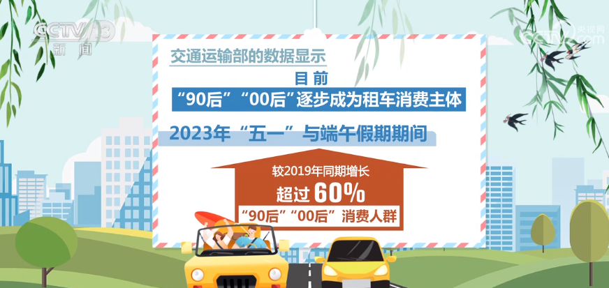 交通運(yùn)輸部的數(shù)據(jù)顯示,目前“90后”“00后”逐步成為租車消費(fèi)主體,今年“五一”與端午假期期間,“90后”“00后”消費(fèi)人群較2019年同期增長超過60%,在全部消費(fèi)群體中占比過半。新能源汽車,設(shè)計(jì)年輕化、時尚化,契合了年輕人這一主力消費(fèi)群體的消費(fèi)習(xí)慣。相關(guān)統(tǒng)計(jì)顯示,截至目前,國內(nèi)新能源車輛租賃訂單2023年比2022年同期上漲了317%。