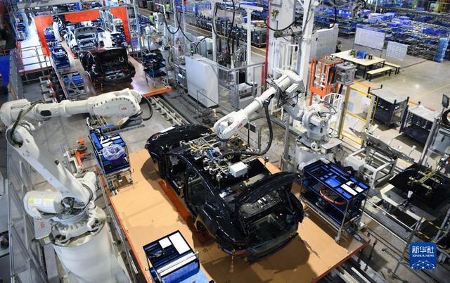 10月9日拍攝的廣東肇慶小鵬汽車智能網(wǎng)聯(lián)科技產(chǎn)業(yè)園內(nèi)的總裝生產(chǎn)線。