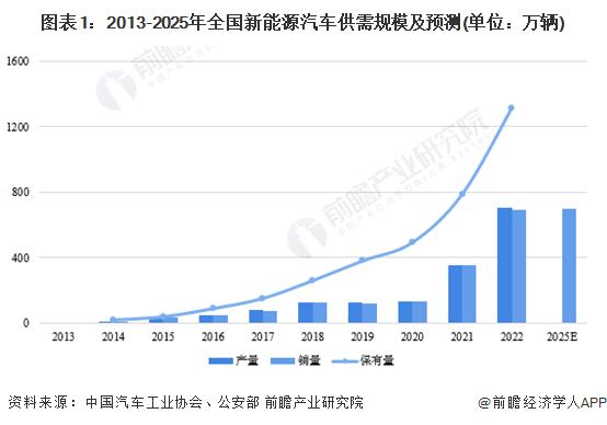新能源汽車是我國(guó)應(yīng)對(duì)氣候變化、推動(dòng)綠色發(fā)展的戰(zhàn)略舉措,在政策和市場(chǎng)需求的推動(dòng)下,我國(guó)新能源汽車產(chǎn)銷量雙雙增長(zhǎng),2022年,全國(guó)新能源汽車實(shí)現(xiàn)產(chǎn)量705.8萬輛、實(shí)現(xiàn)銷量688.7萬輛;同時(shí),據(jù)公安部數(shù)據(jù)顯示,截至2022年末,全國(guó)新能源汽車保有量已達(dá)1310萬輛,占汽車總量的4.10%。根據(jù)國(guó)務(wù)院印發(fā)的《新能源汽車產(chǎn)業(yè)發(fā)展規(guī)劃(2021-2035年)》,未來幾年我國(guó)新能源汽車行業(yè)仍將保持高速發(fā)展態(tài)勢(shì),至2025年,新能源汽車新車銷售量達(dá)到汽車新車銷售總量的20%左右,預(yù)計(jì)銷量將突破700萬輛。