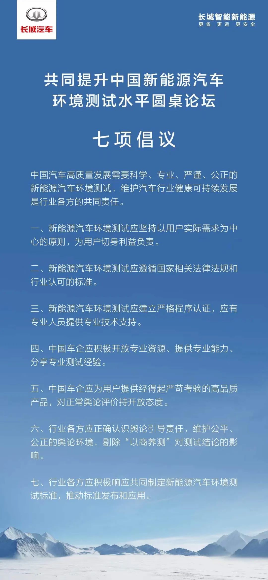 在《共同提升中國新能源汽車環(huán)境測試水平圓桌論壇》上,會議提出七項倡議并指出,中國汽車高質(zhì)量發(fā)展需要科學(xué)、專業(yè)、嚴謹、公正的新能源汽車環(huán)境測試,維護汽車行業(yè)健康可持續(xù)發(fā)展是行業(yè)各方的共同責(zé)任。