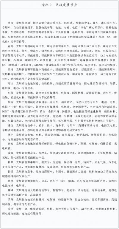 3.提升核心部件配套能力。根據(jù)區(qū)域產(chǎn)業(yè)要素分布與配置情況,重點布局核心部件產(chǎn)業(yè),推動整車與零部件、原材料協(xié)同發(fā)展,力爭電池包、電機、電控等產(chǎn)品達到國內(nèi)主流水平,電池正負極材料、電解液與電機磁性材料領先發(fā)展,實現(xiàn)國內(nèi)外市場同步開拓。積極培育底盤系統(tǒng)、自動駕駛、智慧座艙等研發(fā)團隊,打造細分領域新龍頭。加快打造棗莊北方鋰電之都、泰安鋰谷,壯大東營鋰電基礎材料基地,培育濟南、青島、煙臺、濟寧、菏澤“三電”核心零部件產(chǎn)業(yè)集聚區(qū)。(牽頭單位:省發(fā)展改革委、省工業(yè)和信息化廳)