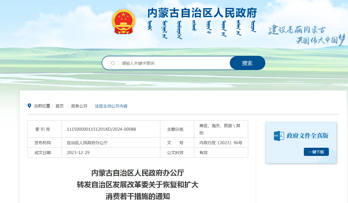 1月5日,內(nèi)蒙古自治區(qū)人民政府辦公廳轉(zhuǎn)發(fā)自治區(qū)發(fā)展改革委關(guān)于《恢復(fù)和擴大消費若干措施》的通知。其中提到:
