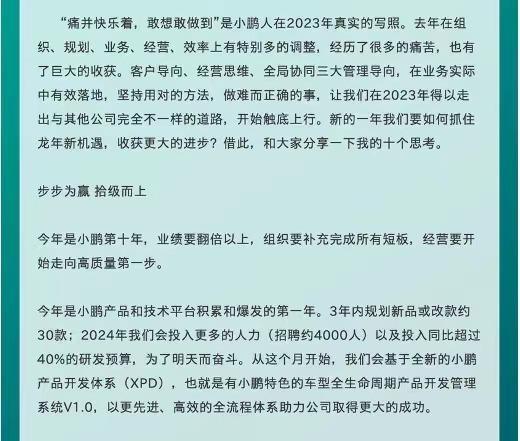 農(nóng)歷新年復(fù)工后的一個(gè)月的時(shí)間里,是新能源行業(yè)HR最忙的一段時(shí)間之一,“搶人大戰(zhàn)”一觸即發(fā)。彼時(shí),不少車企的員工在年終獎(jiǎng)到手后開(kāi)始尋找新的工作機(jī)會(huì),而造車新勢(shì)力小鵬更是抓住這一關(guān)鍵時(shí)期直接在開(kāi)工信中表示2024年要新招聘4000人,再發(fā)兩款新車以實(shí)現(xiàn)業(yè)績(jī)翻倍。