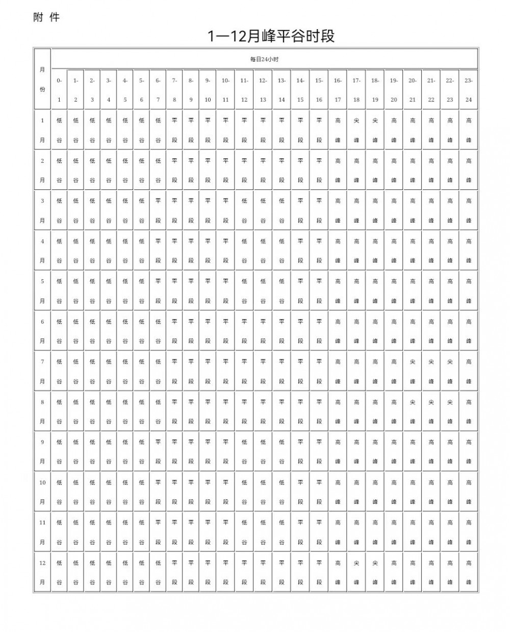 6—8月,高峰(含尖峰)時(shí)段16:00至24:00,其中尖峰時(shí)段為7月和8月的20:00至23:00;低谷時(shí)段0:00至7:00,其他時(shí)段為平段。具體時(shí)段詳見(jiàn)附件。