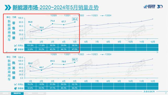 據(jù)乘聯(lián)會(huì)數(shù)據(jù),5月新能源車國(guó)內(nèi)零售滲透率達(dá)到47.0%,較去年同期33%的滲透率大幅提升了14個(gè)百分點(diǎn)。
