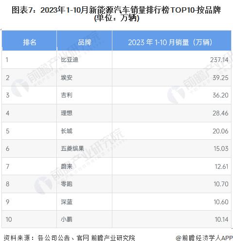 從銷量方面來看,2023年1至10月,我國新能源汽車銷量第一名的品牌為比亞迪,以237.14萬輛遙遙領(lǐng)先全行業(yè)。第二名為廣汽埃安,銷量為39.25萬輛;第三名為吉利汽車,銷量為36.20萬輛。造車新勢力三大車企中,理想排名第四,銷量為28.46萬萬輛,小鵬排名第十,銷量為10.14萬輛,蔚來排名七,銷量為12.61萬輛。總體來看,2023年1至10月,傳統(tǒng)車企新能源汽車銷量總體好于造車新勢力。