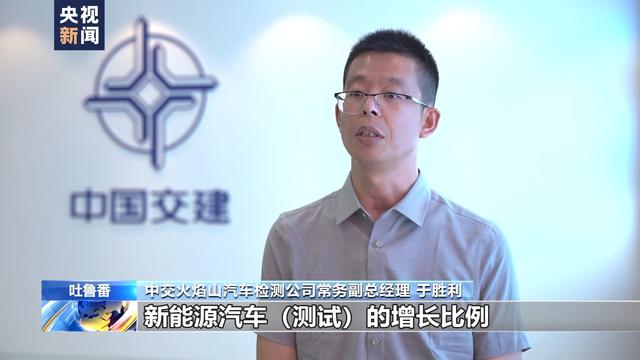 中交火焰山汽車(chē)檢測(cè)公司常務(wù)副總經(jīng)理 于勝利:吐魯番6到9月份,氣溫就可以達(dá)到40℃以上。我們同比進(jìn)行分析,新能源汽車(chē)測(cè)試的增長(zhǎng)比例已經(jīng)達(dá)到了25%左右,測(cè)試的四輛車(chē)?yán)锎蟾庞幸惠v車(chē)就是新能源車(chē)。