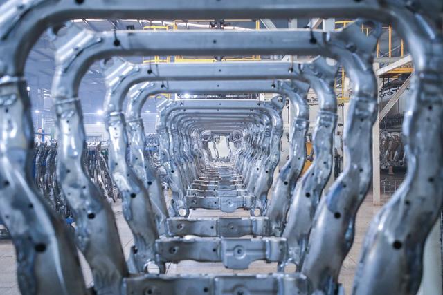 安徽萬安汽車零部件有限公 司內(nèi),剛焊接完畢的底盤件正在進入下一環(huán)節(jié)。王權/攝