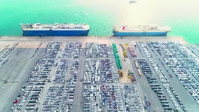 圖片說明1:在碼頭上等待出口裝船的中國(guó)汽車。(視覺中國(guó))