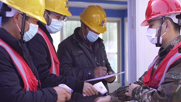 疫情防控阻擊戰(zhàn)打響至今,項目部臨時黨委始終深入貫徹落實黨中央、國務(wù)院及上級公司相關(guān)決策部署,采取了一系列應(yīng)對措施,上下一盤棋,毫不放松抓緊抓實抓細(xì)疫情防控及復(fù)工復(fù)產(chǎn)工作,切實履行央企擔(dān)當(dāng),全力筑牢安全防線。項目部臨時黨委一班人“逆行”而上,提前到崗,保障4000個醫(yī)用口罩、5臺背式噴霧器、200公斤84消毒液、14把紅外式體溫槍及10套防護(hù)服等防疫物資到位;復(fù)工前后,共分發(fā)1000余份防疫物資,測溫2682人次,全面消殺132次。工作中形成項目部到工地現(xiàn)場兩點一線的的閉環(huán)管理,嚴(yán)格落實戴口罩、每日2次體溫測量、2次噴霧消毒、不聚集、分餐吃等防疫相關(guān)規(guī)定,密切關(guān)注人員身體健康狀況并做好記錄;制作、張貼防護(hù)宣傳標(biāo)語50張、橫幅16條、防控知識手冊150本,不間斷開展防治知識宣教,切實筑牢阻止疫情侵襲的銅墻鐵壁。