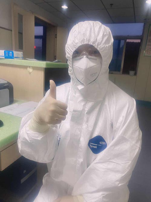 1月28日,負壓病房因人手不夠,在全院范圍緊急招募志愿者。負壓病房,需要“全副武裝”,每天和疑似病人近距離接觸,感染風險極大。但受老公經(jīng)常參加搶險救援戰(zhàn)斗的影響,她多次向領導提出申請,并遞交了入黨志愿書,終于獲批“逆行”進入最危險的負壓病房。接下來的20多天,她每天都要陪著10幾個病人,認真細致的檢查防護、登記、測體溫等等,但確診檢測是個比較漫長的過程,有的病人難免產(chǎn)生焦慮、急躁的情緒,她總是像對家人一樣做好撫慰,幫助他們共克時艱。20多天來,她以院為家,克服了各種工作和生活困難,比如在多重防護服下行動不便、呼吸不暢、口干舌燥,累了就倚著墻蹲會,困了就靠著椅背瞇會??傊?,就這樣神秘的消失在家人的視線中,有時連報個平安的電話都沒空打。