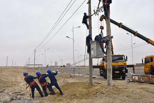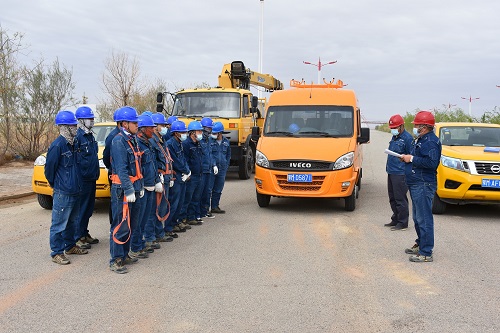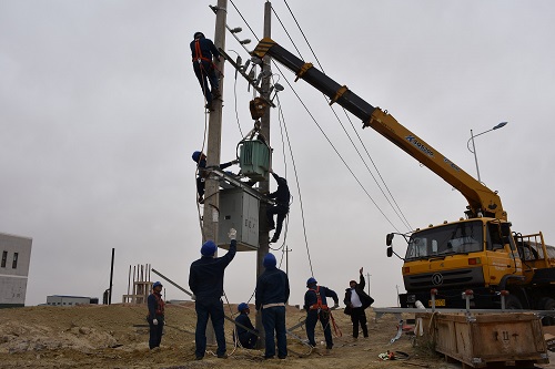 早上7點(diǎn),全體人員在雅布賴營(yíng)業(yè)所集合并開會(huì),“今天的工作內(nèi)容為安裝變壓器,大家要注意做好安全措施,前不久剛發(fā)生的4·20事故我們要引以為戒,嚴(yán)格牢記‘十不干’,杜絕一切違章作業(yè)。”馬新民一邊發(fā)著新手套一邊提醒道。在10千伏9101中泉子Ⅰ回線管委會(huì)支14號(hào)桿處,作業(yè)人員要進(jìn)行立桿并安裝低壓綜合配電柜,呼嘯的寒風(fēng)加大了吊車吊物的難度,也更考驗(yàn)工作班成員之間的默契,“4人登桿,4人當(dāng)小工做地勤,1人協(xié)調(diào)指揮吊車”,負(fù)責(zé)人武開旋迅速做出工作安排。“巴爺,幫我在小繩上系個(gè)瓷瓶”、“偉哥,你那邊高了,再低一點(diǎn)就好了”,“聽我的,一二三,一起用力!”工作班成員各司其職、團(tuán)結(jié)協(xié)作,僅用時(shí)四個(gè)小時(shí),完成了對(duì)雅布賴工業(yè)園公變的安裝,進(jìn)一步保證了工業(yè)園用電負(fù)荷。