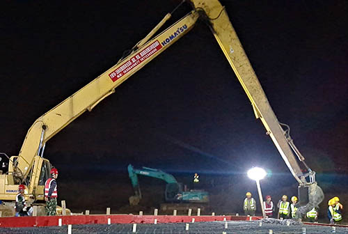 針對PPP項目的特點難點,項目部持續(xù)加強與駐地政府、聯(lián)合體成員單位、協(xié)作單位及供應商等單位的溝通聯(lián)系,尤其是針對應急項目邊設計邊施工、出圖計劃滯后、設計圖與現(xiàn)場情況不符制約施工的實際,著力與政府、設計、監(jiān)理等參建單位構建聯(lián)絡機制,維持良好關系,相互協(xié)作解決問題,最大限度減少客觀條件因素的影響,成功協(xié)調解決了節(jié)制閘項目放水和料場等難題,保證了水位從36m降到33m,提前1個月進行圍堰填筑,10月1日實現(xiàn)圍堰全部合龍,為節(jié)制閘基坑施工提供了條件。