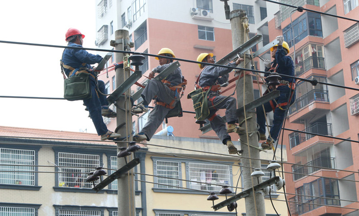 日前,在湖南省永州市寧遠(yuǎn)縣城區(qū)舜帝北路段,筆者看到,電力工人們正在忙碌地架設(shè)10KV 逍水線延伸線。