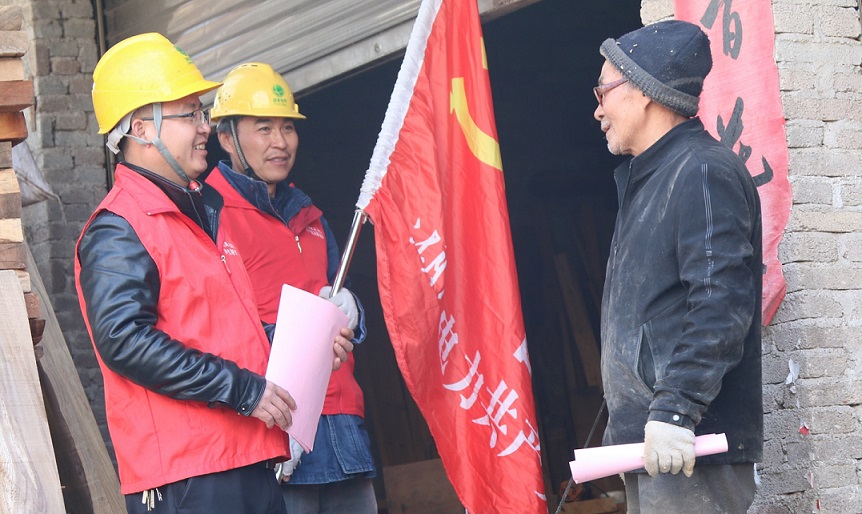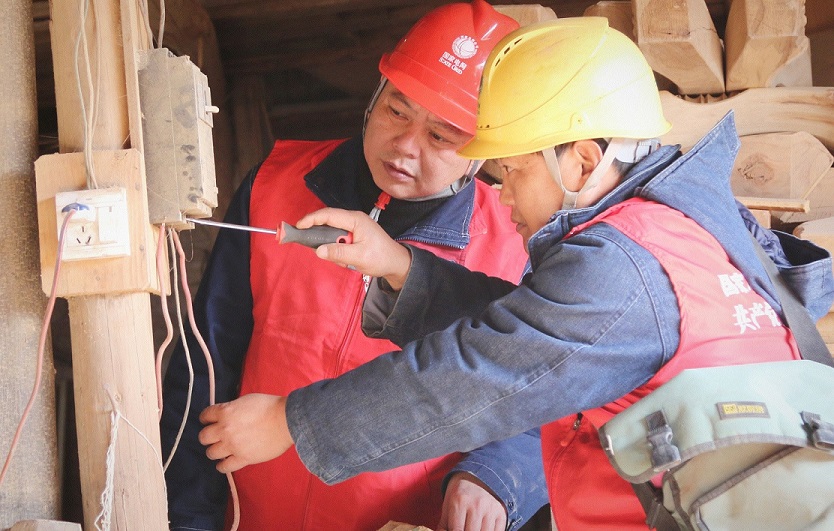 (圖為電力工作人員幫助村民檢查用電線路)