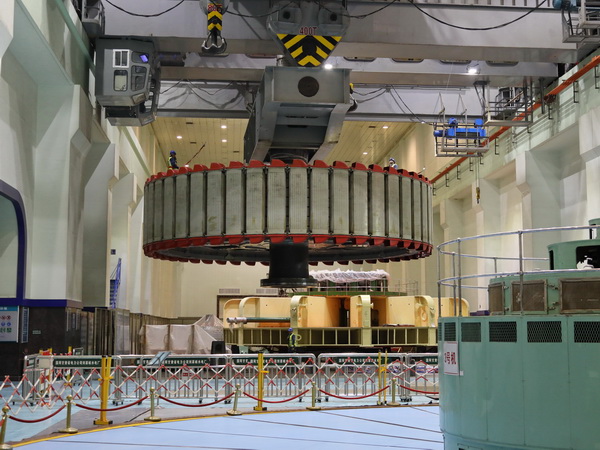 中國電力網(wǎng)訊 4月29日上午,記者在國網(wǎng)甘肅劉家峽水電廠廠房內(nèi)看到,在現(xiàn)場起重指揮的哨聲下,該廠700多噸的4號發(fā)電機轉(zhuǎn)子,經(jīng)過三起三落的試探性起吊后順利回裝至發(fā)電機定子中央,標(biāo)志著該廠號4號機組A級檢修及定子改造工程進入了關(guān)鍵階段。