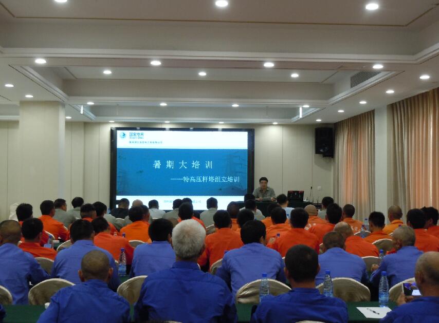 為確保工人正確使用和維護該型抱桿,7月17日至18日,白鶴灘~江蘇±800千伏特高壓直流輸電線路工程(鄂7標(biāo)段)立塔作業(yè)前,鄂電“鐵軍”組織即將進場施工的17個作業(yè)層班組100人,開展為期兩天的理論學(xué)習(xí)、實操培訓(xùn)暨桿塔組立首基試點。培訓(xùn)圍繞落地雙搖臂抱桿使用注意事項、落地抱桿使用組塔要點及安全控制措施等內(nèi)容展開。抱桿、絞磨生產(chǎn)廠家技術(shù)人員和該公司施工管理部、設(shè)備租賃分公司相關(guān)人員通過理論授課和現(xiàn)場實操演練結(jié)合的方式對抱桿的構(gòu)件、性能參數(shù)以及安裝使用流程進行全面介紹,并針對作業(yè)人員提出的問題作了細致解答。