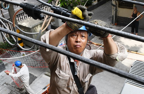 本網(wǎng)訊 9月3日,國網(wǎng)福州供電公司施工人員在福州市臺江區(qū)新興小區(qū)對低壓線路進行纜化改造,有效提高該小區(qū)供電可靠性。新興小區(qū)配網(wǎng)改造也是該公司進行老舊小區(qū)配電設施改造的一個縮影。