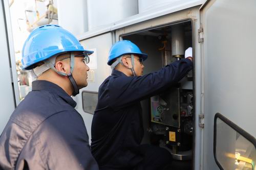 商丘供電公司集中專業(yè)技術(shù)力量,全力開(kāi)展秋季檢修工作,確保設(shè)備安全穩(wěn)定運(yùn)行。圖為10月10日,該公司人員對(duì)220千伏華源變電站進(jìn)行設(shè)備檢修。(王輝 趙沖)