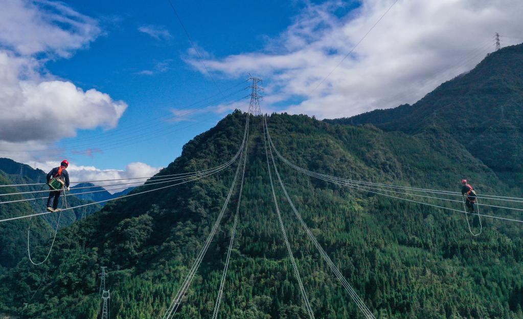 新華社成都10月21日電(記者張海磊、高博楊、王曦)負重20多斤,在距離地面100多米的銀白色導線上,克服導線晃動,走線檢修……在四川省雅安市天全縣喇叭河鎮(zhèn),國網(wǎng)四川電力送變電建設有限公司輸電二公司的巡檢人員羅正雄和同事們正克服雨水多、時間緊、高海拔山區(qū)高空作業(yè)風險大等困難,抓緊開展電力高空作業(yè)。