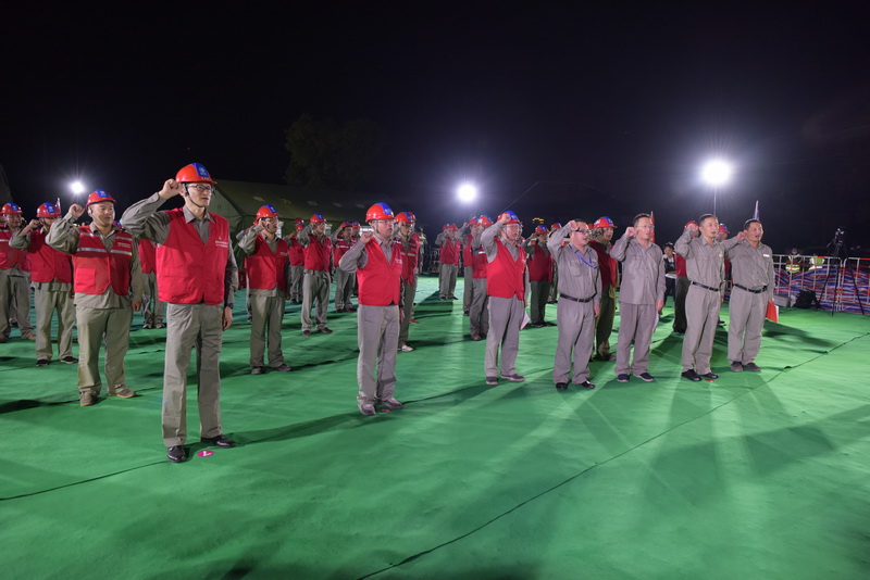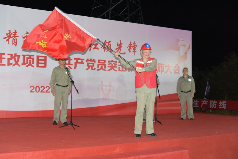 2022年9月15日22時30分,荊州文旅區(qū)220千伏遷改項目“三跨大會戰(zhàn)”,“共產黨員突擊隊”誓師大會現(xiàn)場人頭攢動,施工團隊統(tǒng)一著裝,個個精神抖擻,排列方陣,整齊劃一,重型施工機械有序排列,蓄勢待發(fā)。